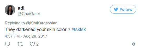 After the photos were made public, social media criticised both the magazine and Kim. They accused the magazine of darkening Kim's complexion to match the shade of her daughter's skin tone. They also said it was insulting for Kim to impersonate Jackie O.