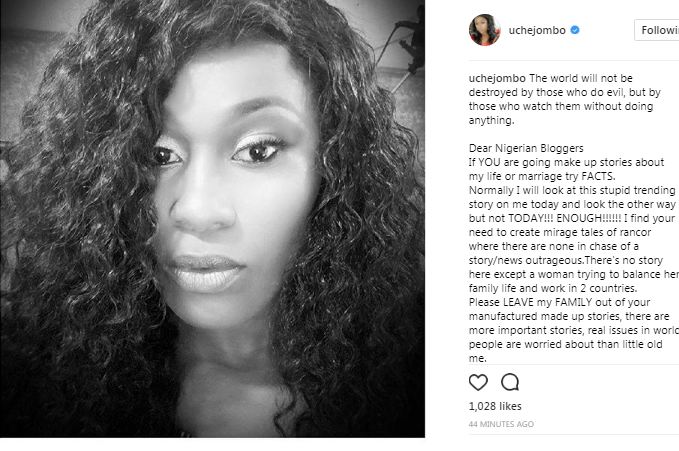 Actress, Uche Jombo has taken to her Instagram page to debunk new rumours that she has divorced her Puerto Rican husband, Kenney Rodriguez. She called the rumours